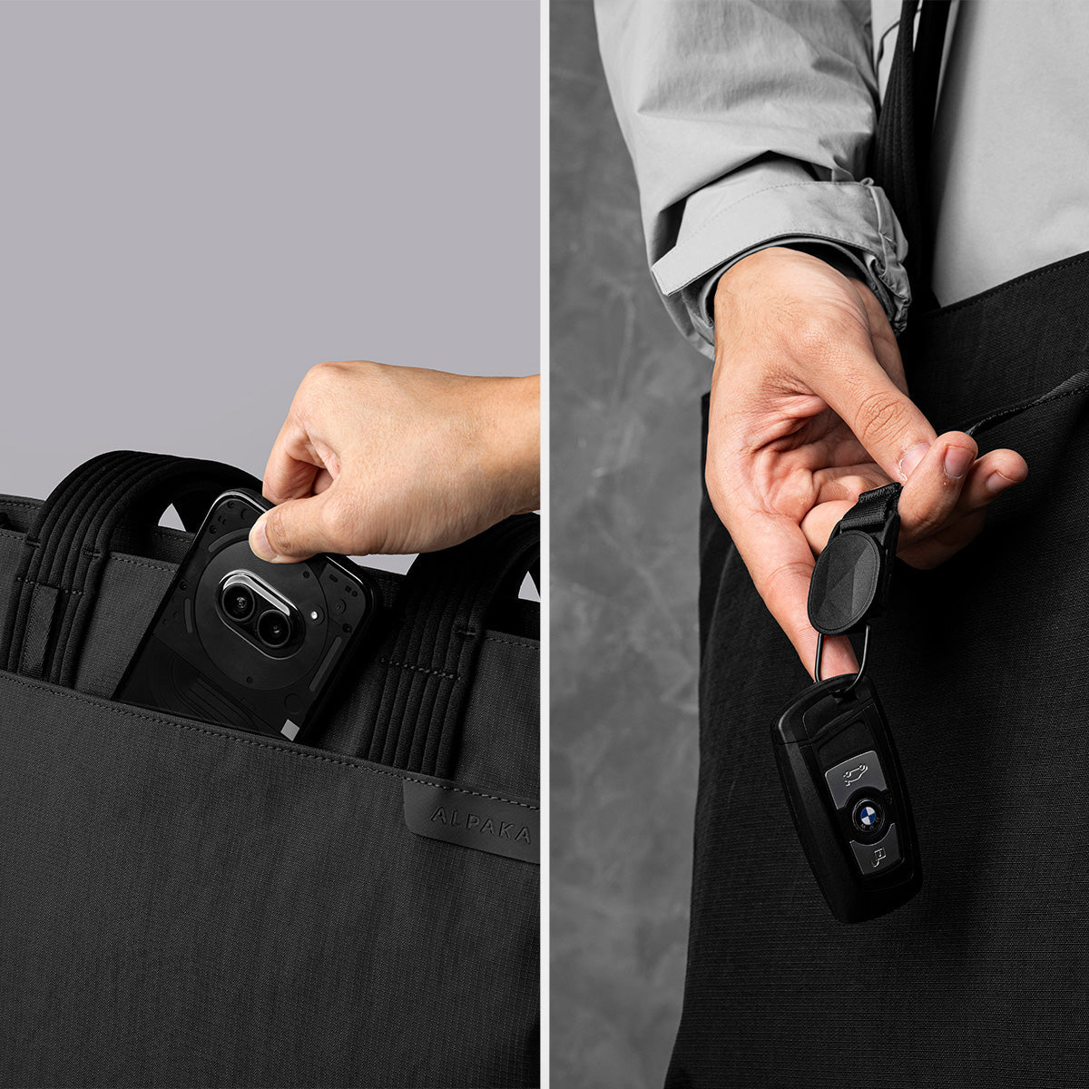A6:是的,外部磁吸口袋附帶 MOD 鑰匙扣,方便快速存放取用常用物品。
